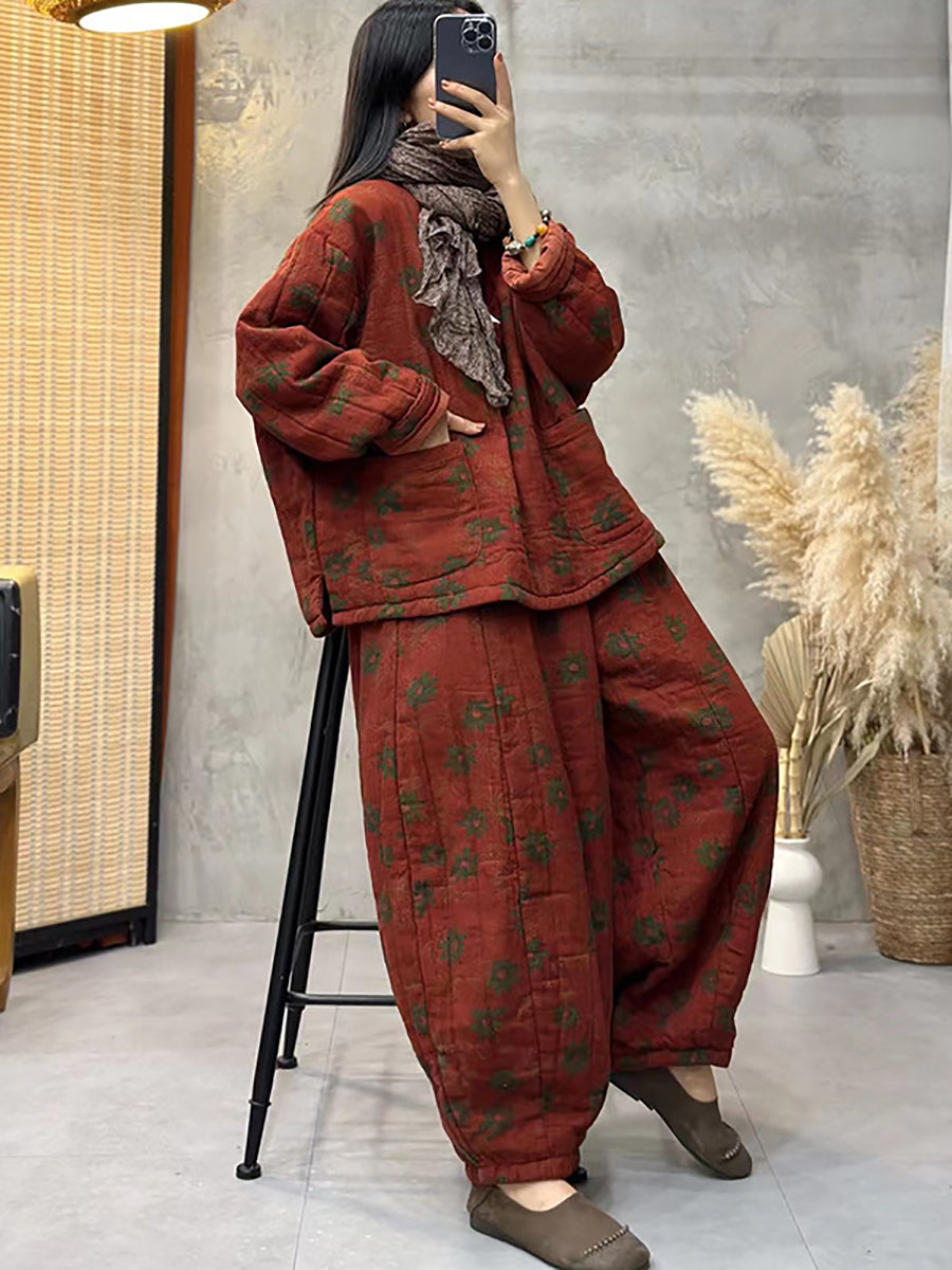 Realizzati in 100% cotone, questi pantaloni imbottiti vintage a fiori uniscono stile retrò e comfort. Caratterizzati da elastico in vita e design harem, questi pantaloni lunghi sono perfetti per la primavera e l'autunno.